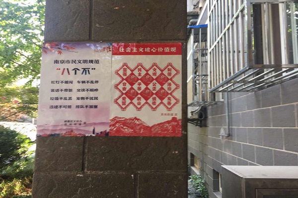 七月八月正好是暑假期间,平日里只见退休、无业老人的小区最近也出现了青春活力的身影,傍晚的时候篮球场上学生们打起了篮球。为了提升青少年的文化素质水平,闻兰社区借助暑假这个契机在小区内的宣传栏、单元楼张贴了宣传海报,对部分即将上大一的新生进行了上门宣传和发送宣传材料,内容包括社会主义核心价值观、善行义举、低碳环保、八个不要等,让这些正能量在不知不觉中影响学生们的一举一动。