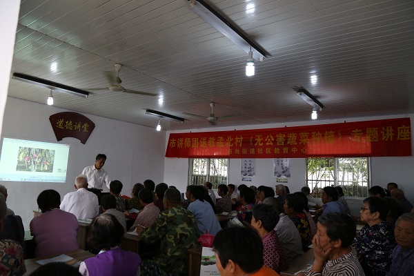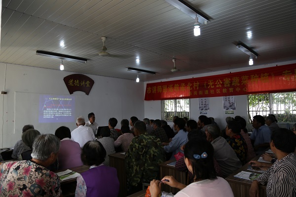 9月13日上午西岗街道社区教育中心邀请市农科教讲师团的毕兆东教授给孟北村村民进行《无公害蔬菜种植》的培训,参加今天讲座的还有社区学院的谷雨娥校长和杨洁主任。