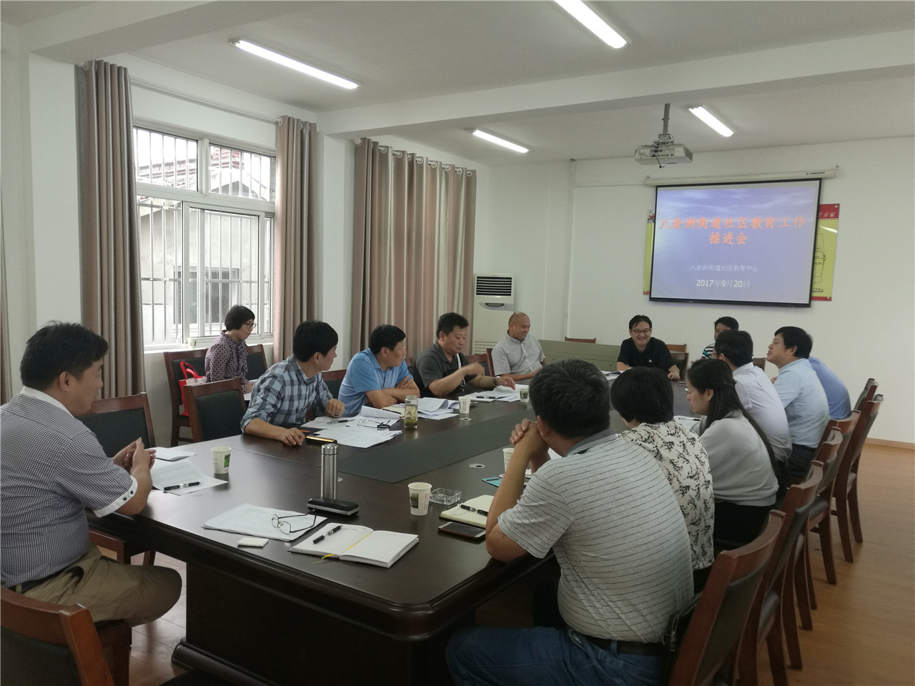 9月20日上午9点,八卦洲街道闻金海副主任,在文体中心三楼会议室主持召开了创新整合之后的社区教育中心第一次全体会议。参加会议的人员是街道有关部门的负责人、中小学校长和幼儿园园长。