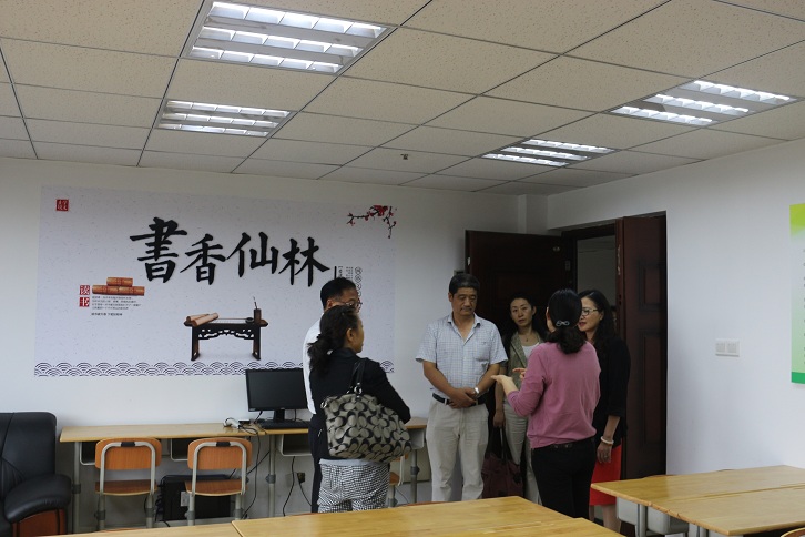 2017年9月27日下午,南京市教育局职社处处长王瑾等市级巡察组成员在栖霞区职社科科长王德文,社区学院院长王广胜等区级领导陪同下到仙林街道社区教育中心参观并为后期省级验收工作进行指导。