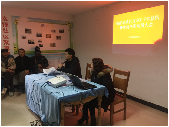 为加强社区党建工作,调动党员参与的积极性,发挥党员干部战斗堡垒作用,2月11日上午,银矿地质社区召开2017年总结暨冬训动员大会。共有63名党员参加了本次会议。