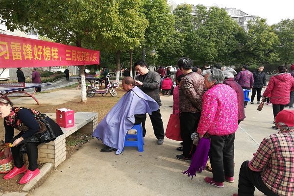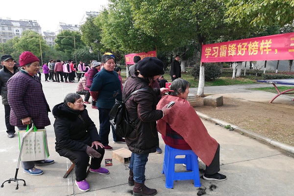 一年一度的3.5学雷锋日来到,为弘扬雷锋精神,闻兰社区开展了广场志愿服务活动,现场为社区老人提供免费修鞋、免费理发和免费磨刀服务。