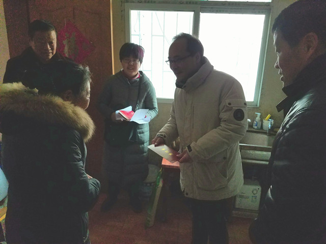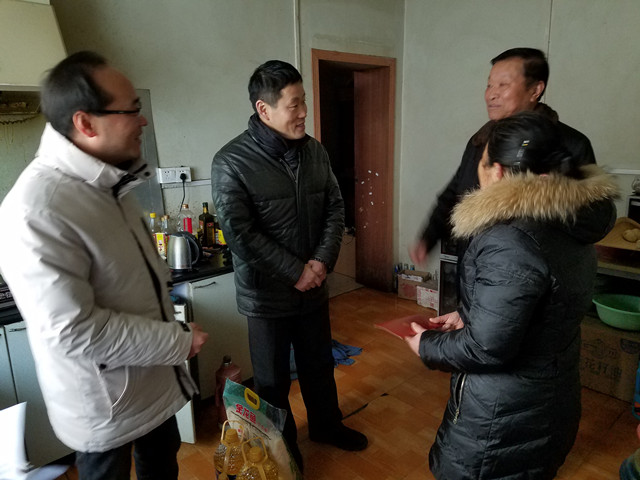 在春节到来之际,栖霞街道工委、办事处领导来到东阳社区走访慰问重大病困难户。
