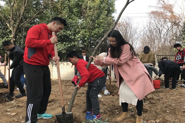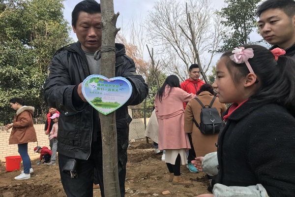 “爸爸,让我来挖一下,可不可以?”“哥哥,我想给小树浇水。”孩子们稚嫩的嗓音不时从观梅西苑传来。只见孩子们拿着早已准备好的铁锹、水桶等工具在各自的“自留地”上和家长,志愿者们一起翻土、挖坑、种树、填土,按照工序有条不紊地进行着。大家忙的不亦乐乎,在植树的过程中,孩子们学会了分工合作、互相帮助。经过一上午的努力,15棵小树苗被分散种好,孩子们非常开心的在小树上挂好自己的认养牌,和自己的小树合影并表示会经常来看望自己种下的小树,给它们浇水,好好养护它们,自己跟树木共同成长。