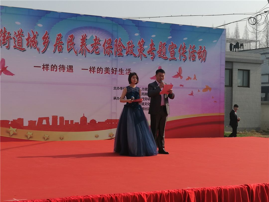 上午九点,演出正式开始,由文化活动中心和社区教育中心组织的精彩歌舞作为开场,街道村居的文艺骨干用自编的城乡居民养老保险政策宣传快板将活动带上一个高潮,迎来台下观众阵阵掌声。节目间隙进行城乡养老保险政策有奖问答活动,主持人针对参保对象、缴费标准、养老待遇及如何缴费等问题现场提问,台下观众积极参与举手做答,活动气氛热烈。演出同时,劳动保障所工作人员在活动现场搭设政策宣传咨询台,通过发放宣传单页、开展面对面咨询等方式,进一步为群众细致解读城乡居民养老保险的相关政策。