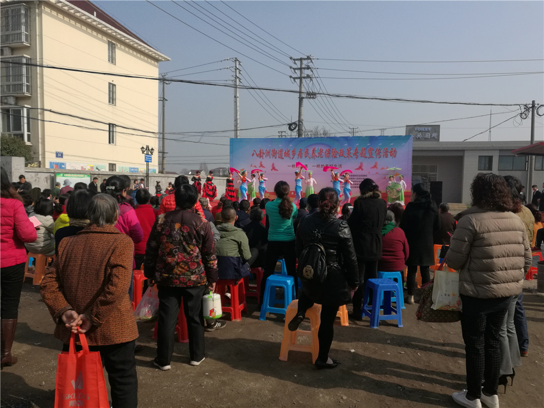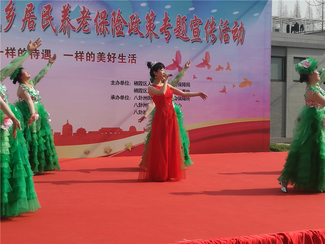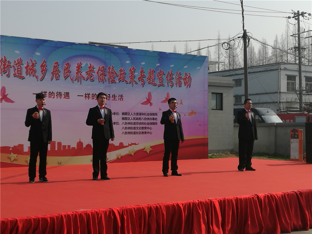 “一样的待遇 ,一样的美好生活。”由街道劳动保障所、文化活动中心和社区教育中心承办的作为南京市城乡养老保险宣传活动分会场之一,今天上午,八卦洲街道在小城镇东站广场为居民献上了一场精彩的宣传演出。