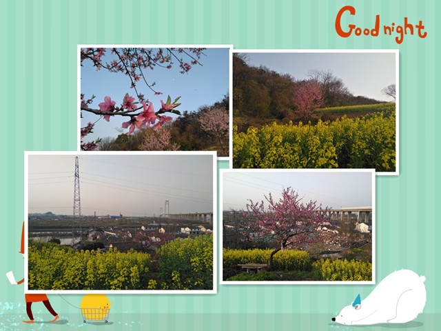 登上北象山顶,只见山腰上有一片百里透红的云霞,高低起伏,延绵不绝,春风过处似波似浪,真是一片桃红的海洋。近看那朵朵桃花,犹如少女开颜,在春风里怒放。世人嫌桃红俗气、轻浮。我只觉得桃花开也美,落也美。“夜来风雨声,花落知多少?”一树繁华也许会因夜来风雨而“吹向玉阶飞”,但又待怎样呢?花虽不会久留,但毕竟桃树曾经美过,犹如老年人也曾经年轻过一样。路遇一位老妇,边挖野菜边赏花。她笑着对我们说:“梅花山观梅要打门票,这里免费看桃花,多好啊!”是啊!梅花固然可敬,只是我们夫妇出生寒门,十七年的寒窗苦,故天性畏寒。梅花生性孤傲而清高,倒不如山野桃花那样热烈,那样真情,那样近人,那样温柔,俗又何妨?