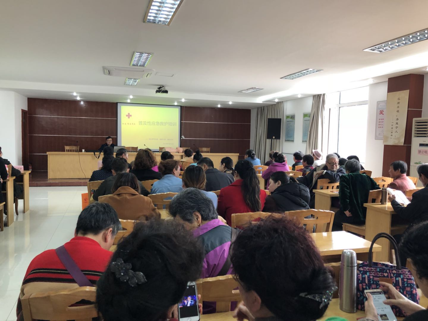由医院医师为社区居民讲授了常见的现场应急救护知识,并通过PPT、视频、现场演示、大家互动等形式,展示了怎样止血、包扎、互救自救、搬运等应急救护方法,重点讲解了心肺复苏、现场应急救护技能。