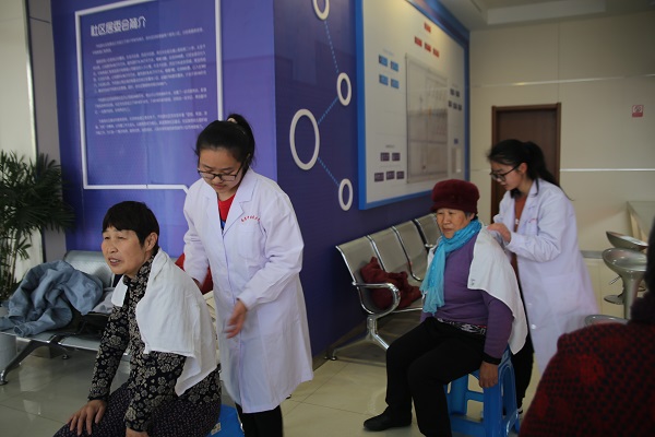 来自南京中医药大学杏林社的志愿者,放弃自己的休息时间,为居民提供中医义诊服务。义诊当天,有基础的量血压、推拿按摩,还有利用器具的拔火罐、艾灸等服务内容,让老人们冬天以来受湿冷天气影响的身体顿时舒畅起来,志愿者们还现场教授了大家一些基本手法,改变平时的不好的行为习惯。