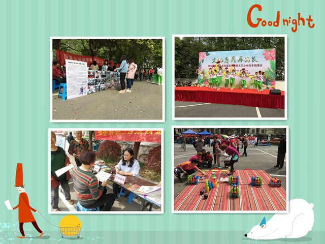文化汇演舞台的两侧,栖霞社区便民服务站开展了各项惠民活动:有江苏省红十字会“博爱光明行”白内障复明行动,为辖区老人筛查视力,以便早发现早治疗;有“南大-栖霞”国学启蒙班团队关于国学经典图书赠送及2018年暑期国学班报名活动;有南京信息学院学生回收旧衣物低碳行动;有马群孩子王组织开展的小型“亲子活动”,幼儿与家长互动赢奖品;有育儿专家提供科学育儿咨询;有社区法律顾问提供法律咨询和422“世界法律日”法律宣讲;有“反邪教”宣传,呼吁辖区居民关爱生命,远离邪教。丰富多彩的惠民、便民活动赢得了现场居民的一致好评。