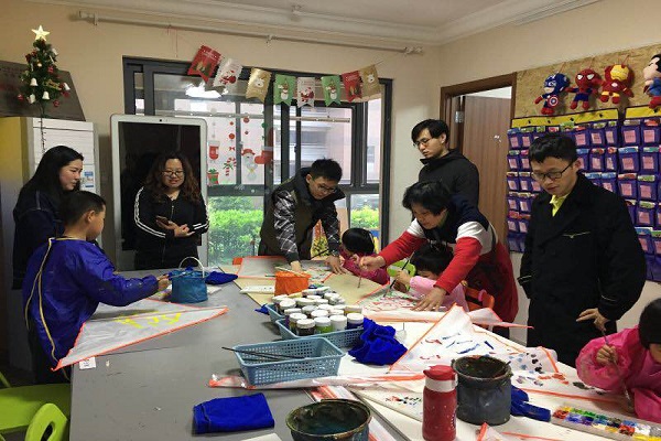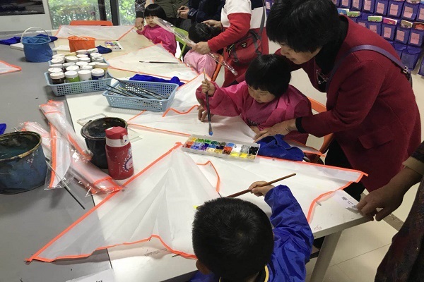 每个小朋友都热情参与,有的要求独立完成,有的要和父母一起完成,孩子们发挥着自己的想象,慢慢涂绘着自己的风筝,多彩的颜色创意着彩色的梦想。激动喧闹之后,是静静地创作时间,此时,正在观看的“大朋友们”也忍不住要参与进来。在老师的指导下,大家认真涂鸦,你一笔我一画,亲子协作着。我的花蝴蝶是橙色的,我的小鸟是红色的……,不一会的功夫,大家都完成了自己的作品,各具特色的风筝书写着不一样的美丽梦想,在作品展示之后,小朋友们高高兴兴地将自己的创意作品带回了家,将精彩瞬间永存于记忆之中。