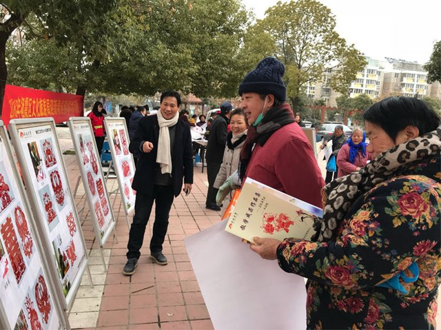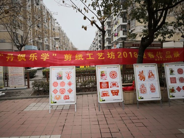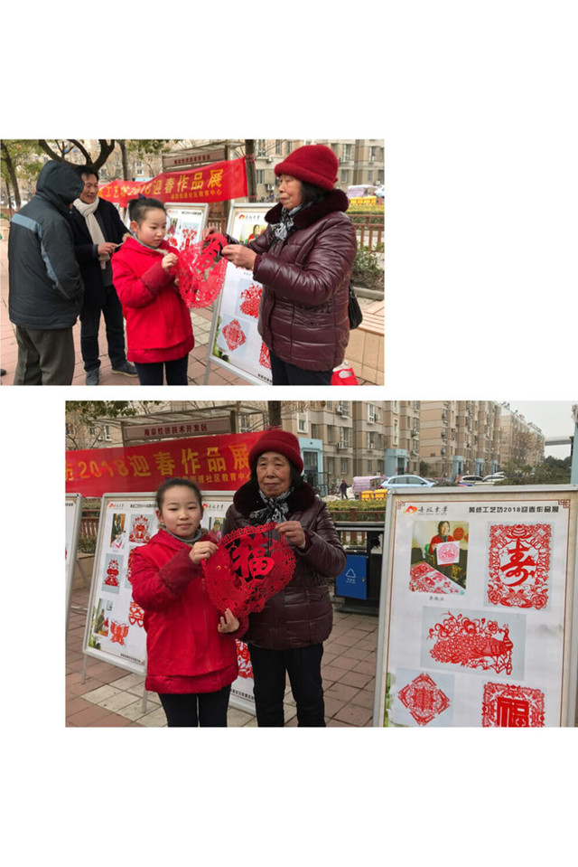 今天寒风凛冽,但栖霞街道社区教育中心和五福家园社区共同举办的"丹枫乐学"剪纸工艺坊2018年迎春作品展还是如期在五福家园社区小广场举行。