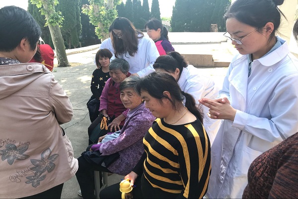 活动中,村里一位80多岁的老奶奶在女儿的搀扶下来到义诊处量血压,结果显示血压的测量值有一点偏高,志愿者们纷纷告诉老人及家人需要注意的事项和预防血压飙升的方法,并对老人进行专业的按摩推拿,老人经过推拿后表示肩膀轻松了许多。
