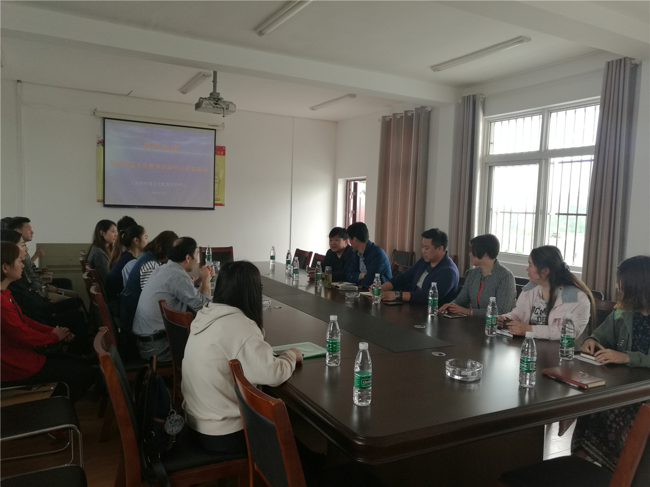 街道文体活动中心曹主任代表中心对钱校长一行的到来表示热烈欢迎.接着陈义和校长就社区教育工作做了交流.首先介绍了社区教育的基本情况,接着重点向来宾介绍街道的创新举措-----街道社区教育学校。从它的组织结构和运作仔细向来宾作了介绍.最后就2018年的工作思路作了交流。