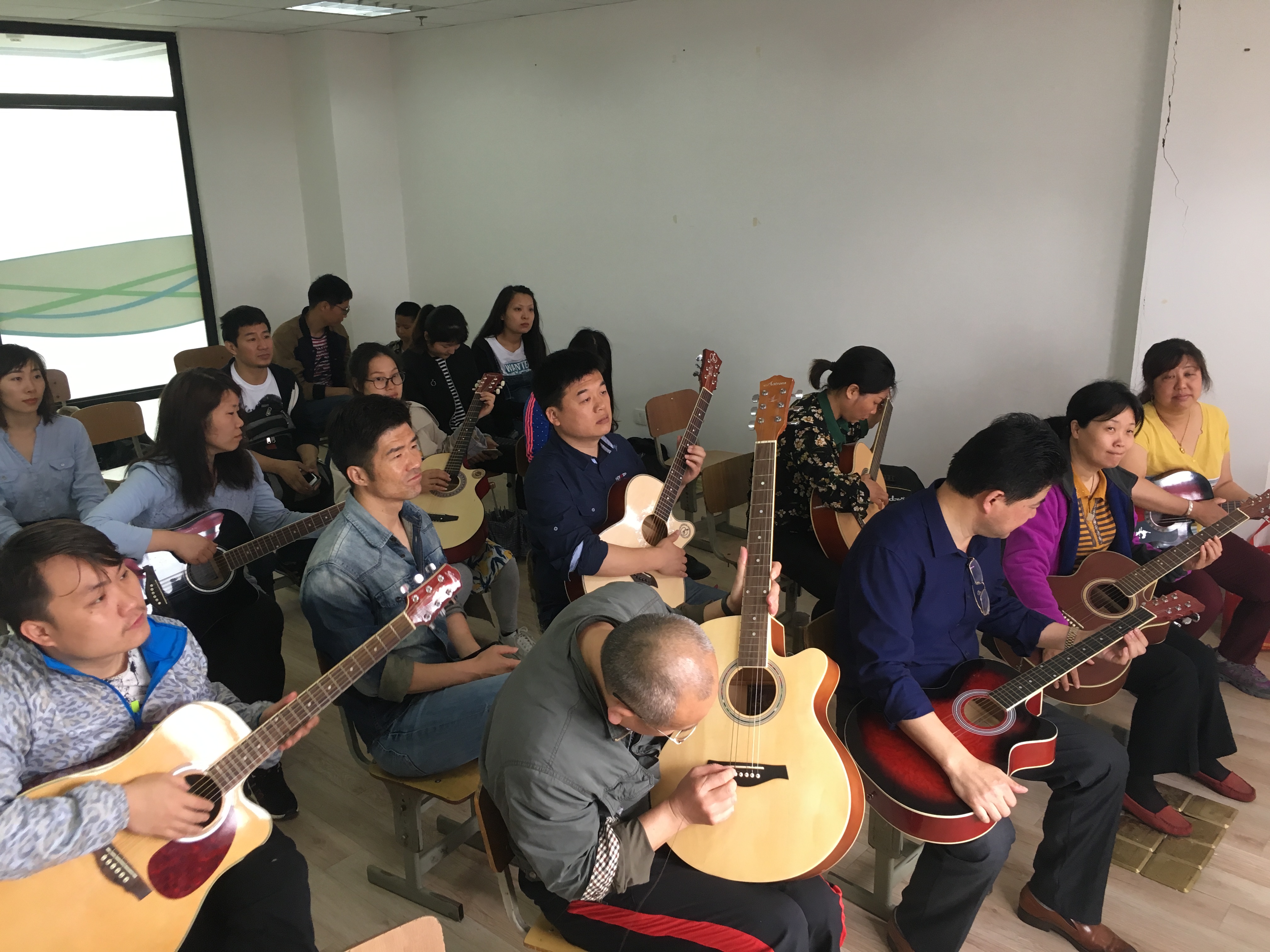 培训班请来了专业的吉他老师陆飞老师授课,第一次开班,更有20名学员参加,吉他班将于每个礼拜六早上8:30到10:00与大家相约社区教育中心音乐教室!