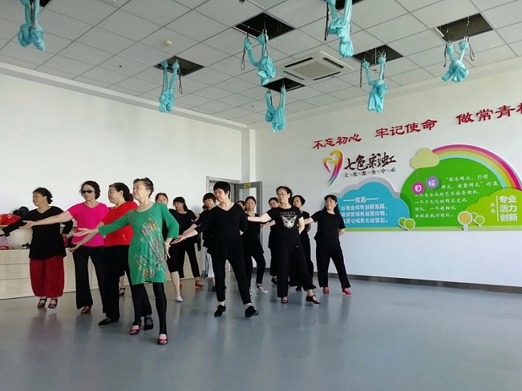 我们知道,舞蹈队中有很多阿姨已年过半百,属于他们那个年代的芳华已经悄悄过去,但你看,阿姨们学的努力,跳的尽兴,笑的开心,他们依旧那么热爱生活那么热爱艺术!“阿姨们!”我们想对您说,“纵使时光流失,但您的舞蹈梦没有离去,我们将陪伴您释放最美的自己!”