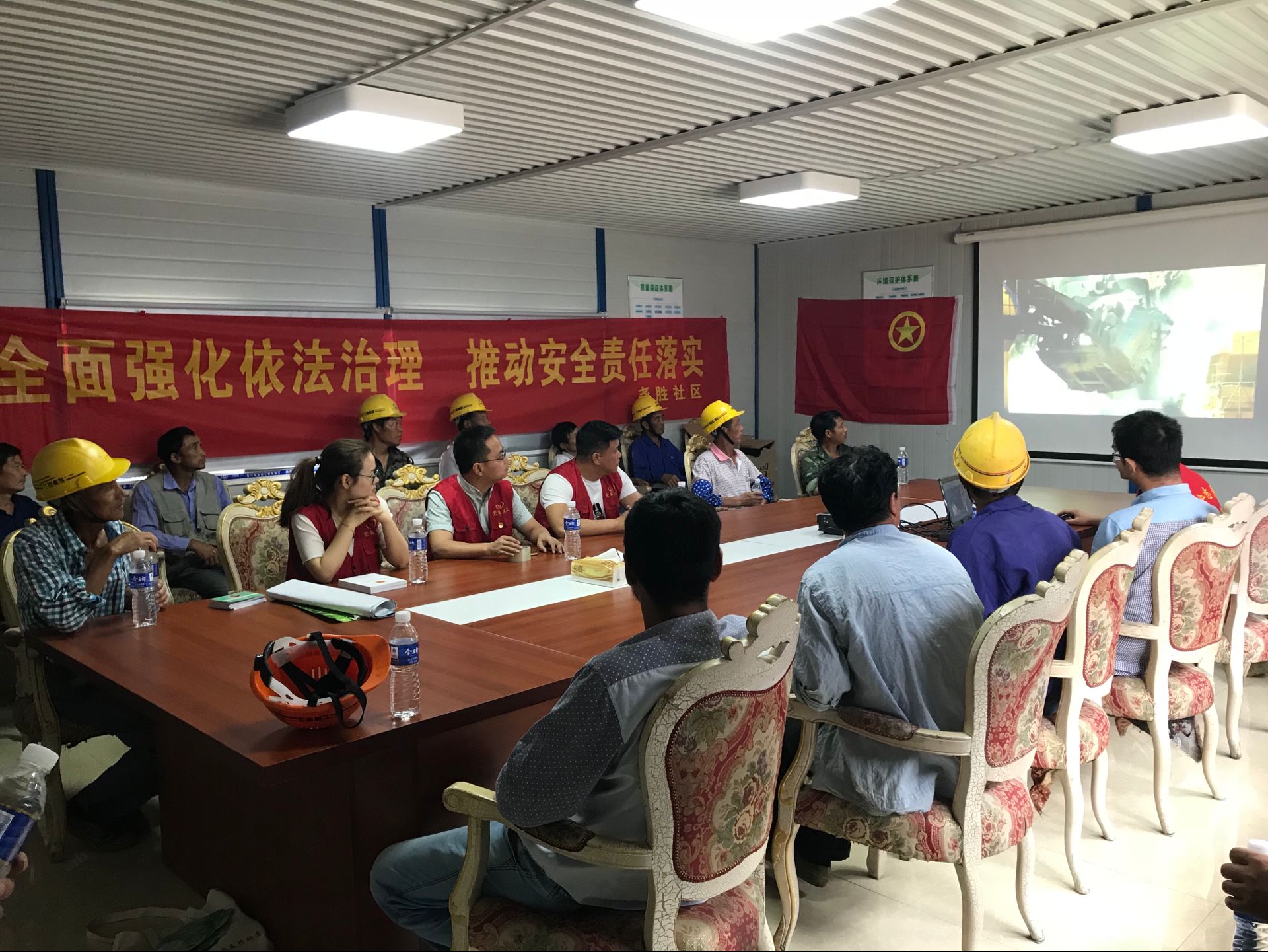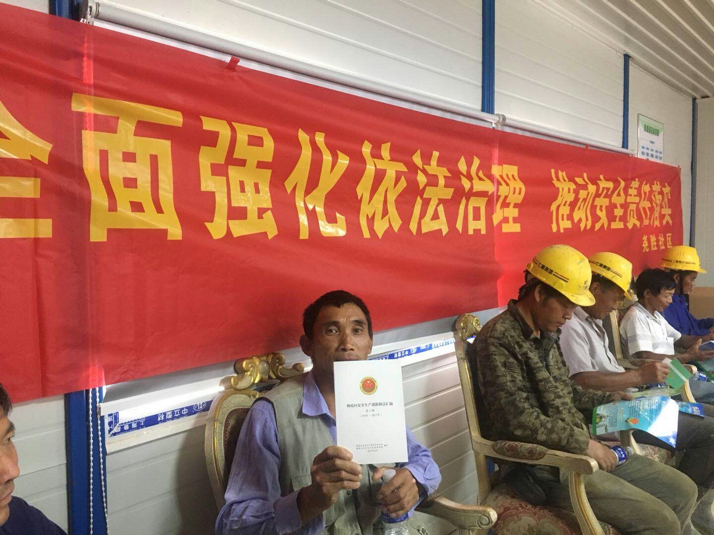 6月5日,为积极贯彻落实党的十九大精神,扎实开展“安全生产法进工地”,尧胜社区党员志愿者走进白金汉爵在建工地,联合施工方共同开展普法教育法制宣传。