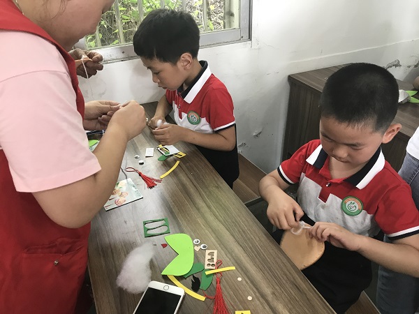 整个活动现场欢声笑语,其乐融融。桌子上摆满五颜六色的彩绳、丝线、挂饰配件、图片等, 由社区工作人员教儿童们如何制作手工粽子,经过老师的现场指导,大伙忙着“包”粽子、勾丝线、挂吊穗、贴图案,做得不亦乐乎。没一会一个个五彩的DIY粽子就诞生了,孩子都嚷嚷着自己做得粽子好看,心里乐开了花!活动结束后,大家把亲手制作的手工粽子送给自己的父亲,同时社区组织志愿者把孩子们做的手工粽子送给社区里的高龄老人,并送去节日的祝福! 家住许巷的李爷爷收到这些可爱的粽子后表示:“非常感谢社区对我们老年人的关怀,也让我们度过了一个不一样的端午节”。