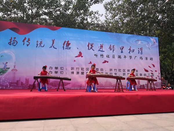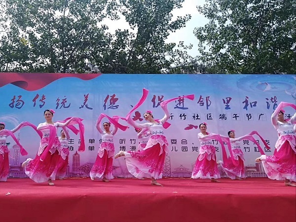 “五月五,是端午。门插艾,香满堂。吃粽子,洒白糖。龙舟下水喜洋洋。”又是一年粽叶飘香时,又是一年端午佳节至。为了传承历史,弘扬文化,在社区营造安全、祥和的节日氛围,2018年6月16日西岗街道听竹社区组织文艺表演队、联合博园幼儿园等,在社区小广场,以“弘扬传统美德,促进邻里和谐”为主题,开展了迎端午文艺演出,活动中爱德基金现场认微心愿,文艺汇演中穿插开展安全知识竞答、计生、反邪教传销宣传。