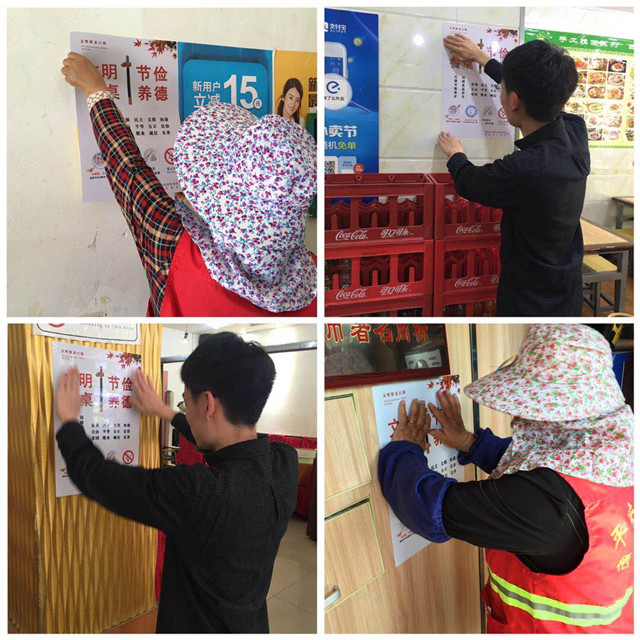 社区工作人员通过张贴横幅、绘制宣传黑板报等形式,向广大居民宣传文明餐桌礼仪和文明用语;普及“惜衣有衣,惜食有食”的生活理念。并且,社区还组织志愿者向辖区餐饮店发放文明餐桌行动宣传海报,宣讲节俭饮食的理念督促餐饮企业从自身做起规范经营、提升服务,同时提醒消费者合理消费杜绝浪费。