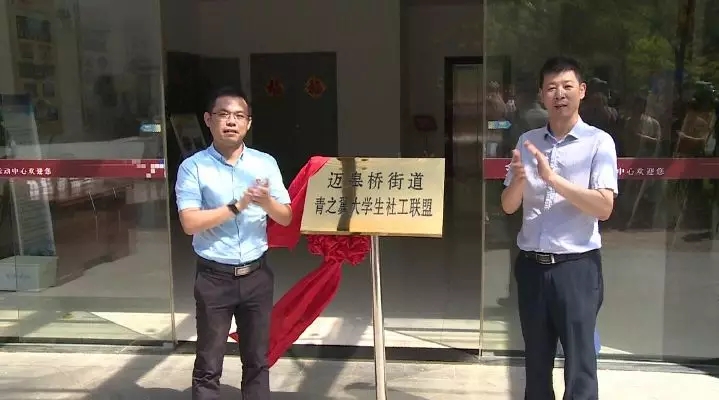 上午9点30左右,迈皋桥街道工委副书记程海博在迈皋桥街道社区教育中心为“青之翼”大学生社工联盟活动阵地进行了揭牌,同时,街道团工委向文体中心进行了赠书活动。