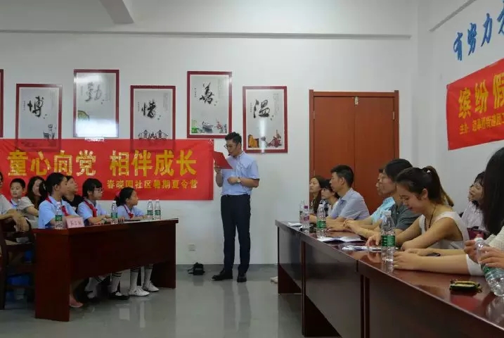 随后,程海博副书记对此次活动发表寄语,希望“青之翼”大学生社工联盟不仅能够成为一面重要的地区文化旗帜,更能不断发挥街道与社工、驻街单位以及兄弟街道的纽带和桥梁作用。同时,希望通过此次十九大知识进课堂暑期夏令营活动,进一步加深大家对十九大精神的学习领悟,使十九大精神浸润学子心,与丁家庄小学共建,加深迈皋桥区域化团建的工作成效,形成长期共建共赢的良好局面。