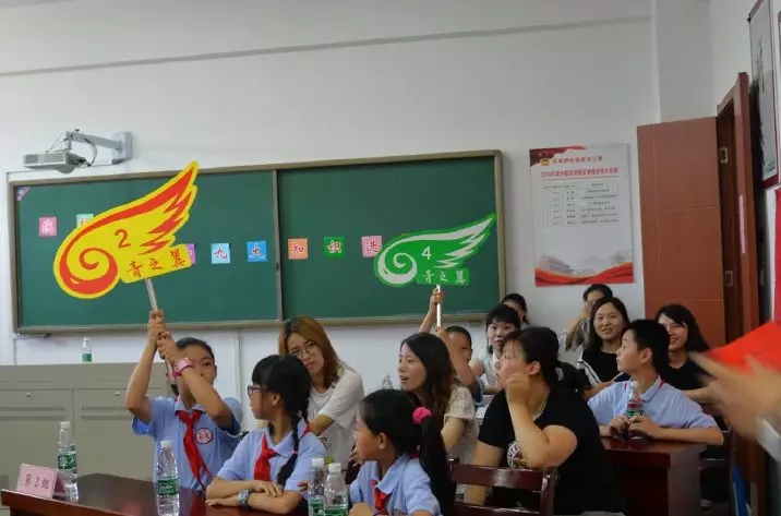 迈皋桥社区教育中心参观完毕,此次“十九大知识进课堂”知识竞赛正式进入比赛环节。此次参赛成员由12名大学生社工和12名丁家庄小学学生共同组成,以每组3名大学生社工和3名小学生共同组队的形式,一共形成4支参赛队伍。知识竞赛分为必答题、抢答题和附加题三个环节,分为依次作答和30秒抢答两种形式,答对积分,答错不扣分。