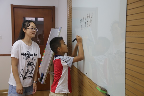 十九大召开后,教育反思兴起,孩子厌学问题和教育中的“短期功利主义”现象很严重,学生减负也成为社会热点问题。此次夏令营活动内容由南师大学生们精心设计准备,“自我介绍”“我是小小朗读者”“看图识中国”“诗词大赛”“英语阅读”“手指操——感恩的心”“创意剪纸”等等,丰富的内容,寓教于乐,不仅让孩子们体验不同的课程内容,而且让他们学到不同的知识。另外,夏令营活动中,通过排队、举手提问、倾听等文明礼仪,培养孩子们的纪律意识和团结意识,旨在让孩子们都做“文明小天使”。
