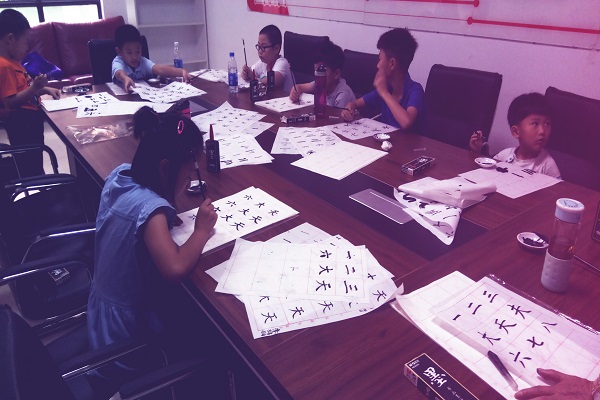 活动中,书法老师首先为大家讲解了书法艺术的魅力,随后,详细讲述了书写姿势、运笔方法、书写过程中的注意事项等知识,孩子们认真聆听、努力表现。特别是刚接触书法的孩子们,老师耐心地手把手的教导。全神贯注,各有风采,有的孩子坐姿很正、握笔准确,有的孩子实践能力强,字体公正到位,也有的孩子领悟能力极强,字字形象有力。在老师的精心指导下,一幅幅的书法作品跃然纸上。