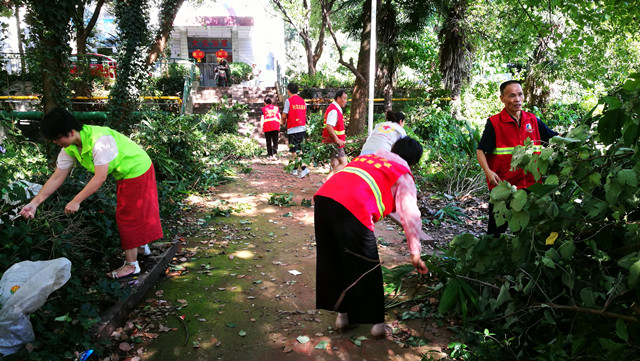 单身楼区域是辖区内人口聚集地,周边树木长久未修,导致日照或出行不便。社区工作人员联络工程队对阻挡道路的树木进行修理,志愿者们也齐齐上阵,将修剪完毕的树枝们清理到一旁,不阻挡居民出行。