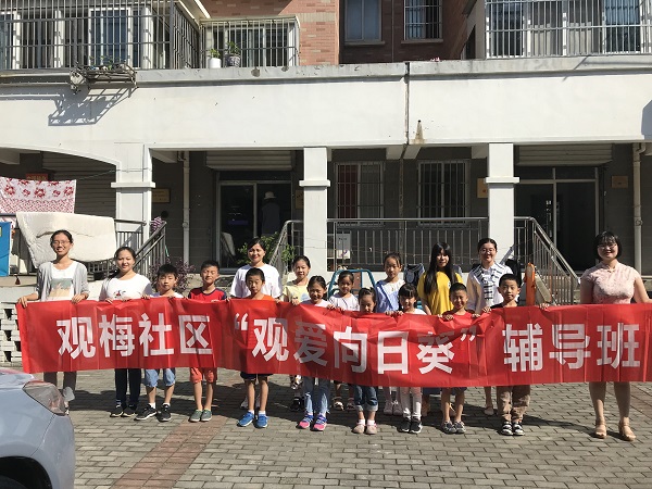 为加强未成年人思想教育,提高儿童学习成绩,缓解家长辅导学习的压力,观梅社区联合南京理工大学英语学院志愿者自2017年起就共同开办了“观爱向日葵”免费辅导班,每周六上午专门为孩子们开“小灶”,免费辅导他们学习,其中的特色就是英语口语教学。