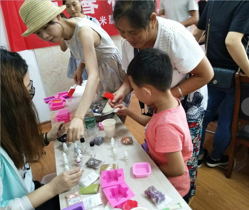 “爸爸快点,快点,我们要迟到啦……”走廊上传来了大大小小的脚步声,这里是马群街道金陵驿社区党支部举办的“亲子DIY 欢乐制皂”亲子手工皂制作活动现场。