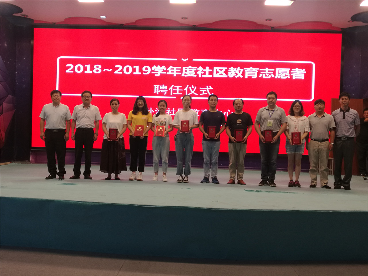 首先由社区教育中心专职教师王春锁宣读了街道社区教育学校对志愿者的聘任决定。在轻快的乐曲中志愿者代表依次上台。从街道文体中心主任曹德强和社区教育中心校长陈义和的手中接过聘书。
