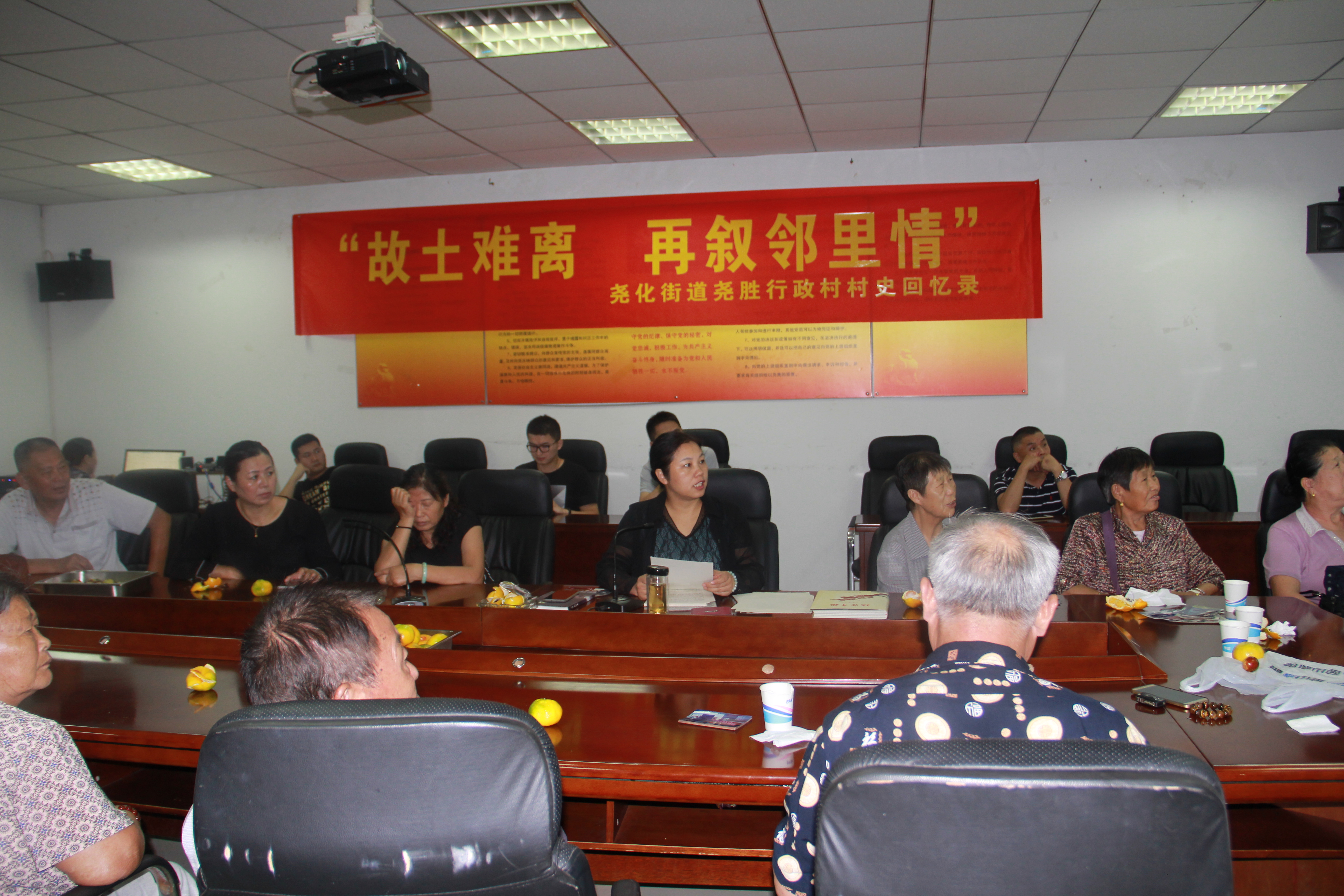 2017年,尧化街道尧胜行政村纳入城中村改造项目中,尧化街道仅存的城中村即将消失,为此2018年9月11日,尧胜社区举办了一场“故土难离 再叙邻里情”村史回忆活动。活动有幸邀请到曾在社区担任过老队长、老会计、老干部等同志,还有社区老党员、现任队长,大家一同回忆故土,再叙邻里情。由尧胜社区妇联主任毕玲兰同志来讲述尧胜行政村的来历隶属、著名人物、历史演变、乡土人情等。在场的老同志看着老照片连声感慨,纷纷讲述自己知道的尧胜村民间趣闻乐事,当聊到合作社时期的领导干部品德,更是赞不绝口。