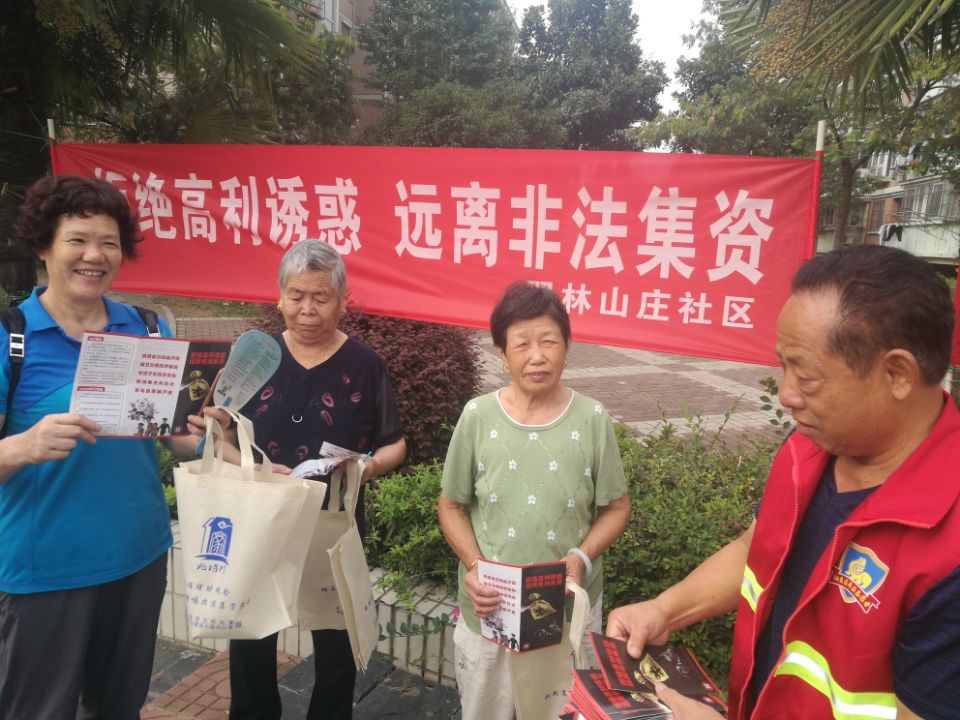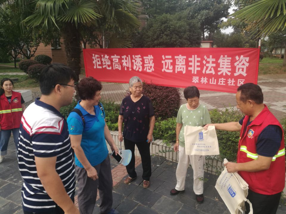 为了提高辖区居民的法律意识,警惕非法集资陷阱,使居民树立正确的理财观念,2018年9月15日上午,翠林山庄社区在小区广场上开展了一场防范非法集资集中宣传活动。