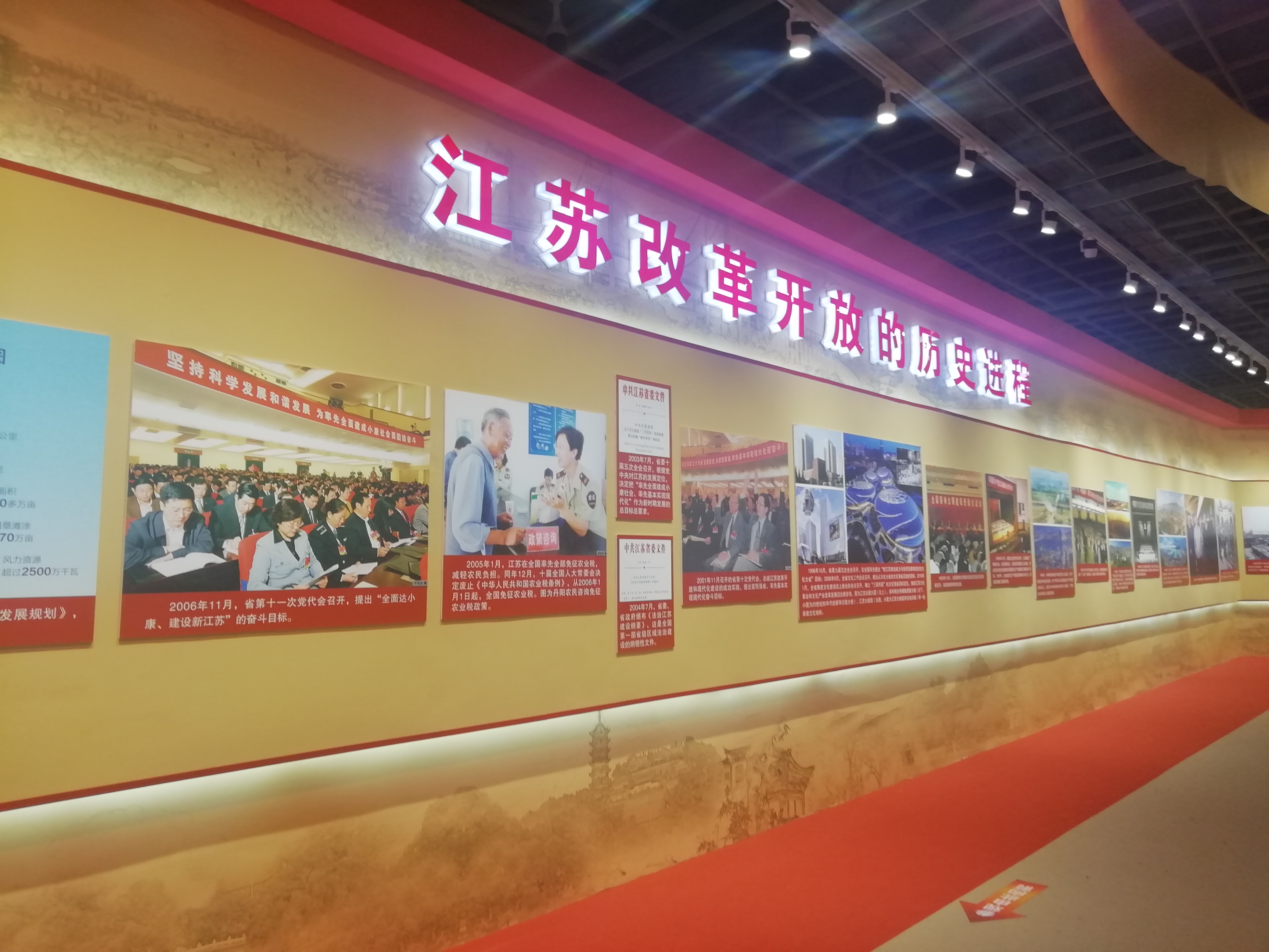 图片展是全省庆祝改革开放40周年群众性主题教育活动的重要组成部分。此次展览以“筑梦伟大时代共创美好生活”为主题,分为“序篇”“历史跨越”“沧桑巨变”“美好生活”和“结语”五个部分,通过实物、图片、宣传片、场景再现和VR虚拟现实等丰富多样的形式,生动呈现了百姓、企业和社会在四十年间的改革变迁,全面展示了江苏在党中央坚强领导下,省委、省政府团结带领全省人民推进改革开放40年的伟大实践和辉煌成就。