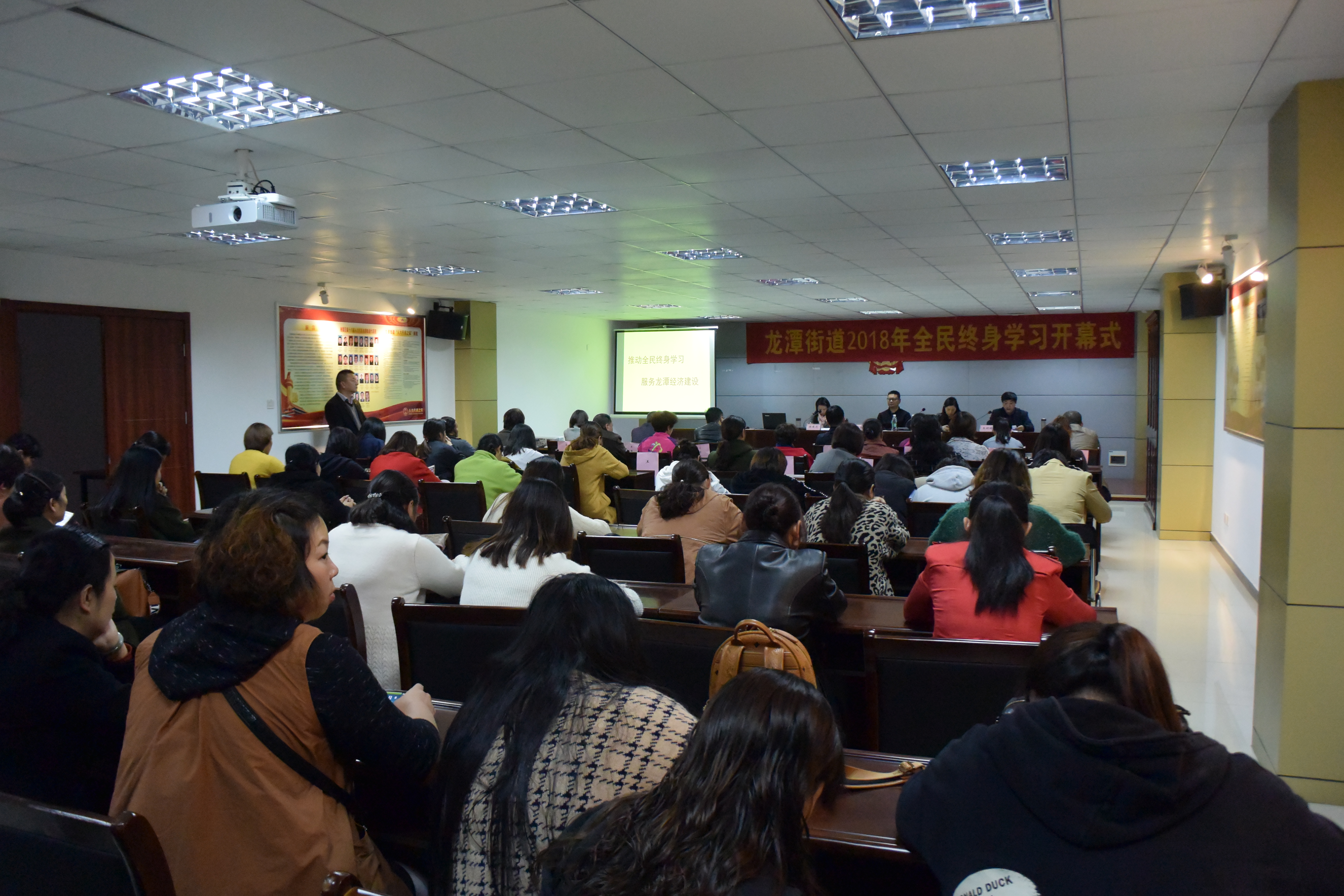 11月7日下午,龙潭街道2018年全民终身学习开幕式在靖安佳园社区三楼开展,此次活动的主题是推动全民终身学习,服务龙潭经济建设。参加本次活动的领导有龙潭街道分管教育副主任张福俊、街道卫计科科长陈建花、街道劳动保障所所长丁萍、街道社区教育中心校长王明鹏,以及各个村居的社区教育专干,全体参会人员共200余人。