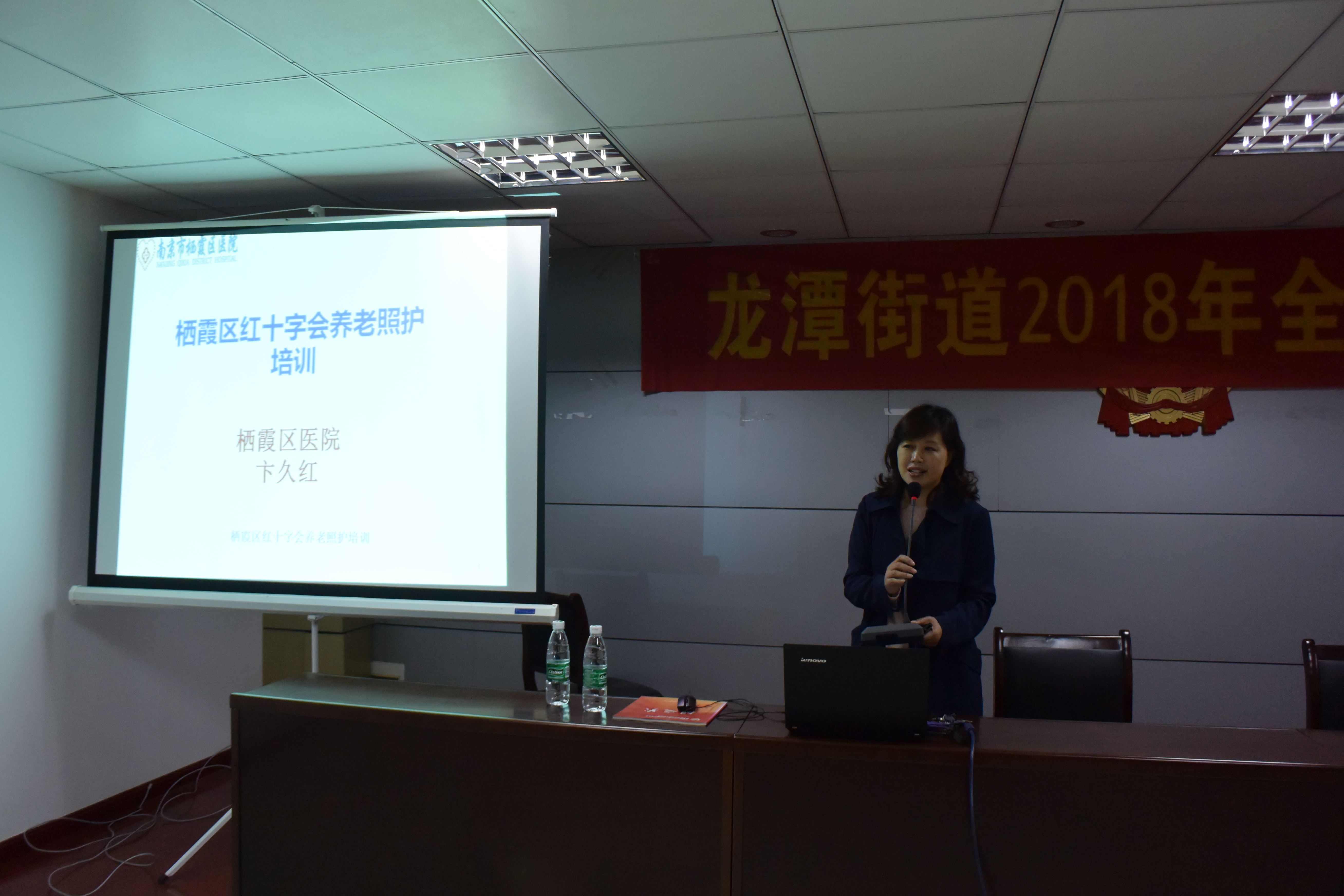 会议结束后,栖霞区红十字会为在场参会者开展养老照护培训,本次培训课由栖霞区医院卞久红、张丽霞进行授课。