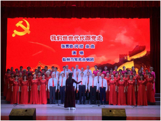 由仙林街道社区教育中心万家欢合唱团带来的《祖国有我》做为当天音乐会的开场, 歌曲采用舒展流畅的旋律,表达了人们对伟大祖国的衷心依恋。紧接着有男生独唱、女生独唱、男女二重唱等多首甜业老师编曲的原创歌曲赢得现场阵阵热烈掌声,最后由仙林街道社区教育中心万家欢合唱团演唱的《我们世世代代跟党走》,将全场气氛推向了高潮。至此,艺海觅知音首发式暨甜业声乐作品演唱音乐会圆满落幕。