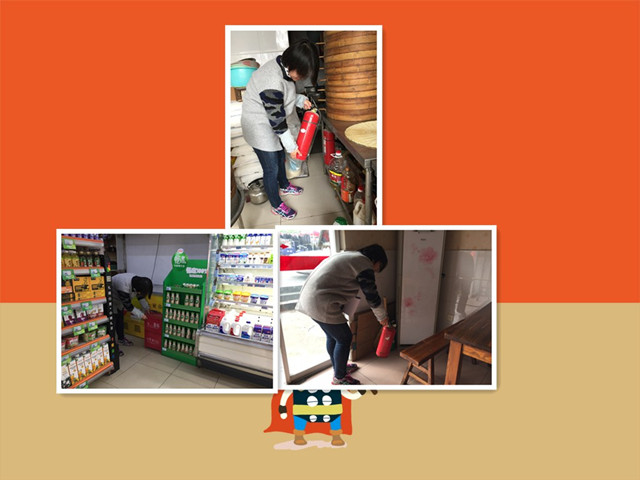 社区工作人员深入到沿街店面进行安全隐患检查,重点对餐饮单位的的用火用电情况,消防安全器材是否有损坏、是否过期及餐馆工作人员的健康证进行登记,还对辖区内修维修电器的商户进行安全隐患排查,要求其做好消防安全和用电安全工作。