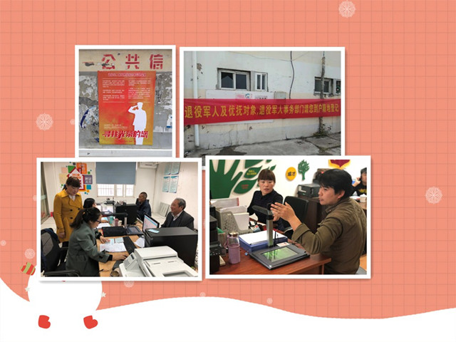 2018年11月6、7日两天,银矿地质社区在栖霞街道劳动保障所进行信息采集工作,由于录入信息工作是一项全新的工作,社区工作人员提前在街道民政部门领导的指导下,进行了业务学习培训。采集当天工作人员先发号,到号后进行基本信息采集,确保现场采集工作不乱不错。工作人员耐心询问被采集人员的基本情况信息、服役信息等情况,并对原件进行的拍照采集,对没有发放“光荣人家”牌子的进行补发,本次基本信息采集做到不错登、不漏登,确保数据完整准确。据了解,本次信息采集到11月底结束,银矿地质社区于11月22日进行人员补录登记,现阶段银矿地质社区正在积极通知社区集体户口的退役士兵的录入工作,确保辖区内的采集对象百分百录入。