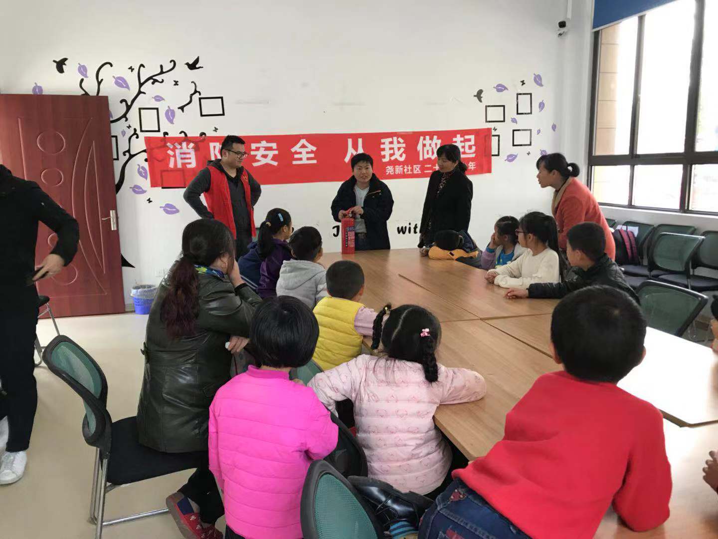 2018年11月20日下午,尧新社区全科社工及社区负责安全的社工们结合“119消防宣传日”,在金尧山庄居家养老活动,组织社区小朋友及家长们开展“消防安全 从我做起”主题教育活动。让辖区内的孩子们和家长一起走进社区的研学课堂。