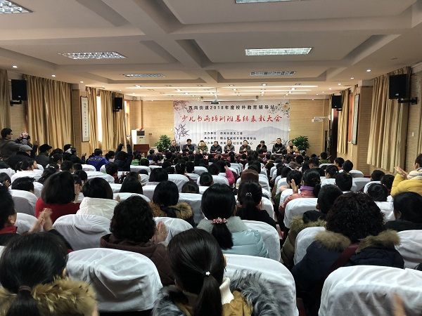为认真总结好2018年度各期少儿书画班的教学工作,鼓励少儿接受传统书画艺术的熏陶,开创街道少儿书画培训工作新局面,2019年1月13日上午,在摄山星城小学阶梯教室召开了2018年度少儿书画培训班总结表彰大会。