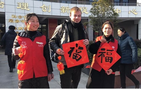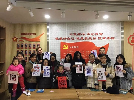 这边广场上人头攒动,那边创工坊里也是济济一堂,来自南师大春晖志愿者团队的老师们带领和园的居民开展剪纸活动,本次活动也吸引了几个外国留学生,大家一起动手学习了剪纸,加强了中外文化交流,学习了中国传统文化。
