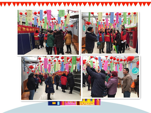 活动开始前,社区工作人员精选100条谜语进行抄写、裁剪,高高悬挂在社区活动室的房顶上,营造了浓厚的节日氛围。