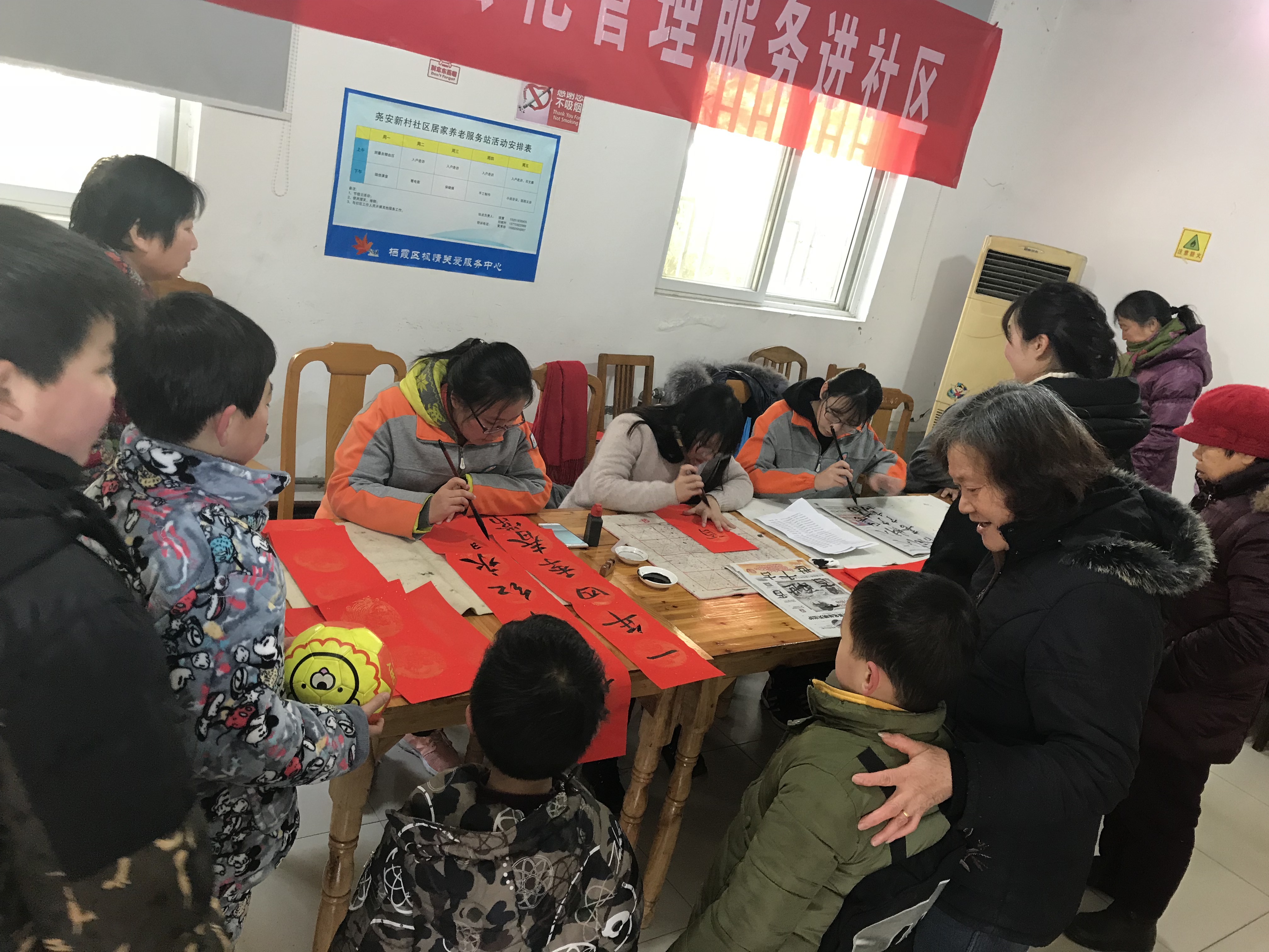 来自栖霞区燕子矶中学的同学们早早的便来到了活动场地,刚刚结束紧张的期末考试的他们放弃了休息时间,与社区工作人员一起布置场地,有的帮忙搬桌子,有的摆放红纸和笔墨,大家有条不紊的进行着准备工作。见他们忙活的这番场面,附近许多社区居民都纷纷赶来参与其中。