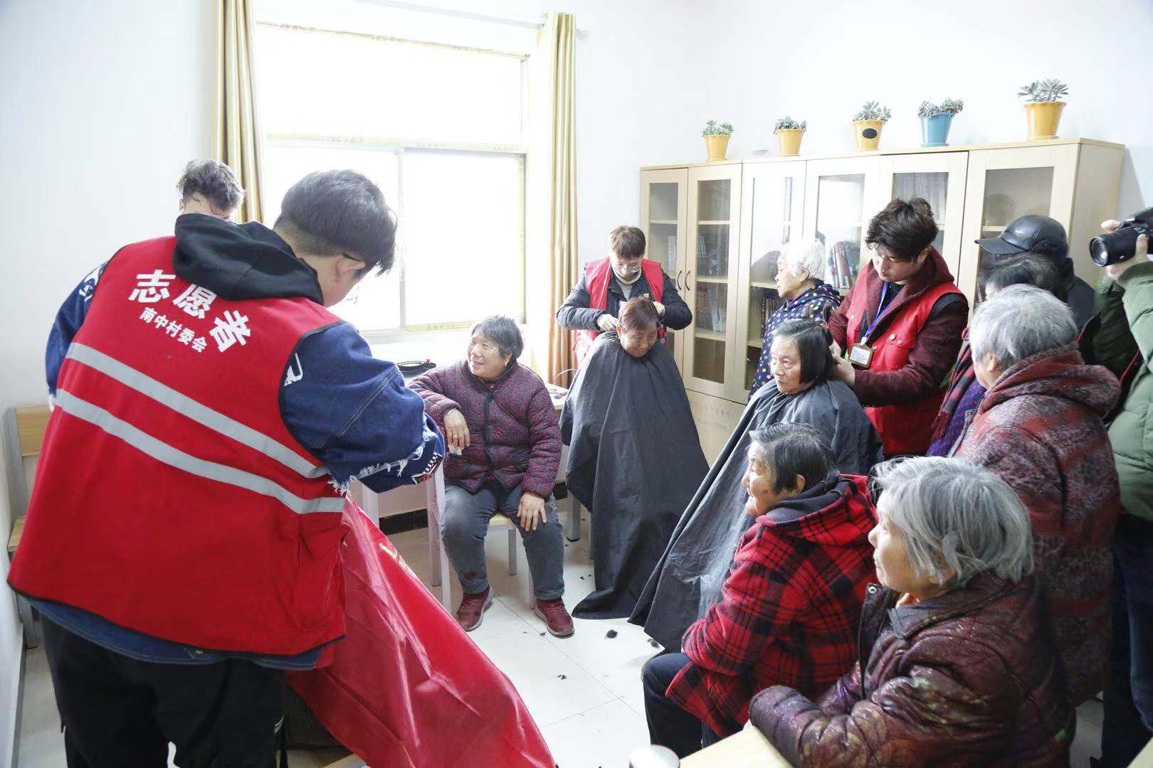上午九点,好邻养老社南中村服务点里人头攒动。记者在现场看到,栖霞区城管局志愿者、南中村便民服务中心志愿者和多家志愿服务社会组织分别支起摊位,开展健康义诊、免费理发、推拿按摩等便民服务,吸引众多居民参与。