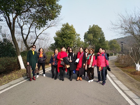 3月4日上午,阳光明媚,一扫多日以来的阴霾,大家的心情也像阳光一样灿烂。我们来到了羊山湖公园,这里梅花盛开,走近梅花树,香气扑鼻,阿姨们纷纷拍照记录这美丽的风景。阿姨们一路走,一路说说笑笑,还拍照记录这样美好的瞬间,不经意间发现已经爬上山顶了。大家选了一块地方,铺上野餐垫,摆上了水果、瓜子、糖果等零食,然后大家坐下来歇一歇。阿姨们有的给大家分发水果或零食,或互相递着水果零食,照顾在场的每一个人,场面非常温馨。