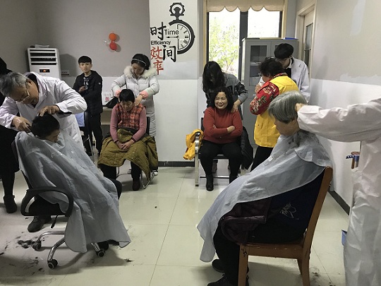 清早窗外细雨绵绵,叔叔阿姨参与活动的热情却没有丝毫衰减。活动现场,磨刀修伞、测量血压、推拿按摩、舒筋活络、艾灸养生、修剪造型、花茶饮用、药囊制作一应俱全。医生边按摩边细心询问居民身体状况,讲解为何身体不适,如何活动缓解,又需要调配哪些药物。一条长板凳,一把锈刀剪,在现场志愿者热情帮助下,叔叔阿姨拿号排队,几十把刀剪再现锋利。“嗨,不用谢我,学习雷锋,为人民服务!”理发师傅弯着腰,双手没有停过,简单的一句话却让全场人内心温暖。