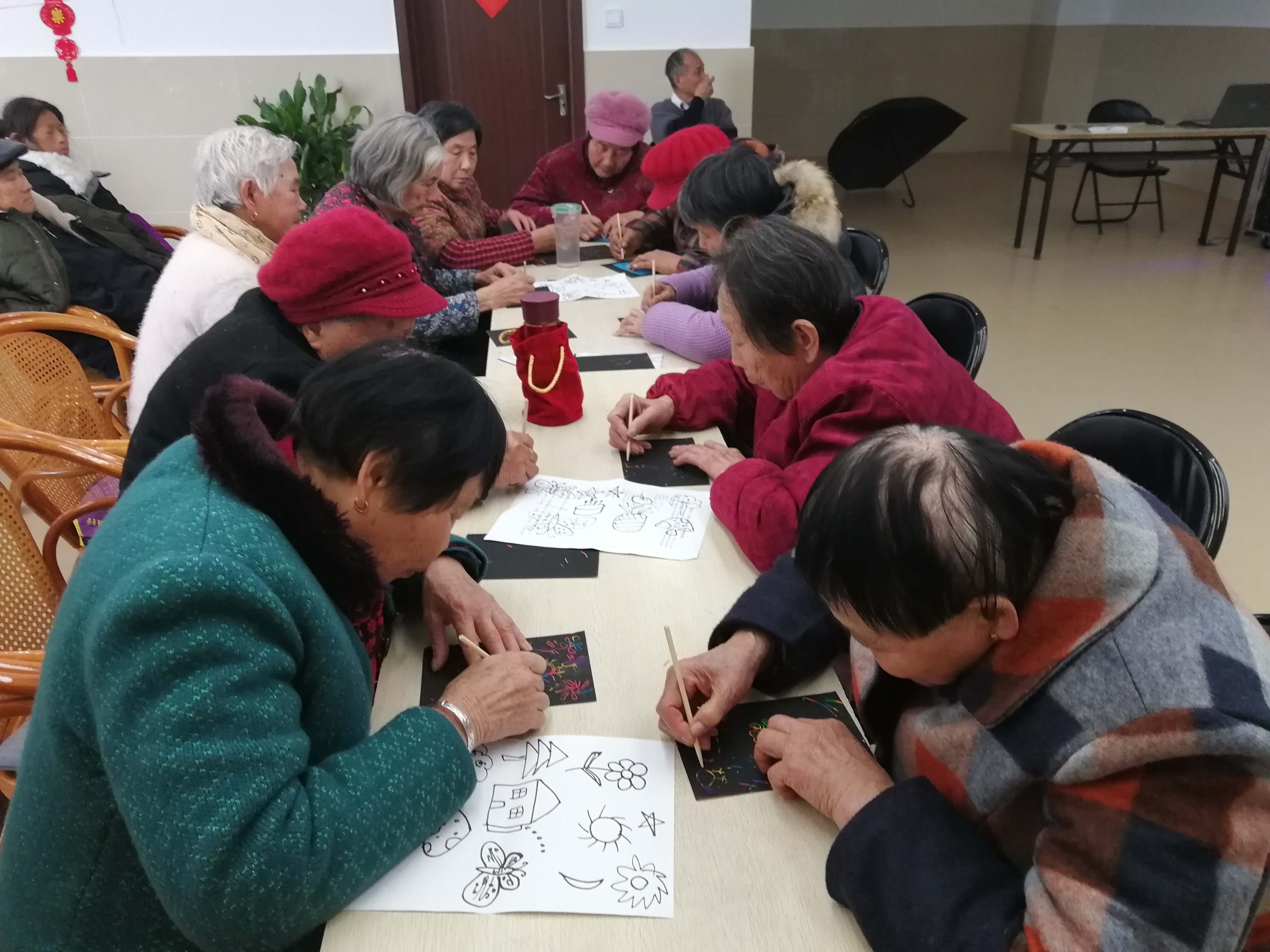 有的老人画上了苹果,寓意晚年生活健康平安;有的老人描绘出了可爱小动物的画面,追忆无忧无虑的童年生活……每位老人都将自己的想法与希望寄托在薄薄的刮画纸上,脸上满是笑容。过丰富多样的特色活动,让老人们敞开心扉,欢度晚年生活。